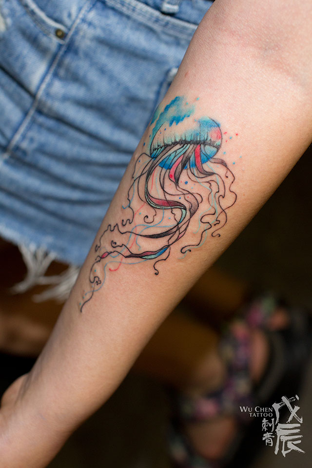 水彩水母