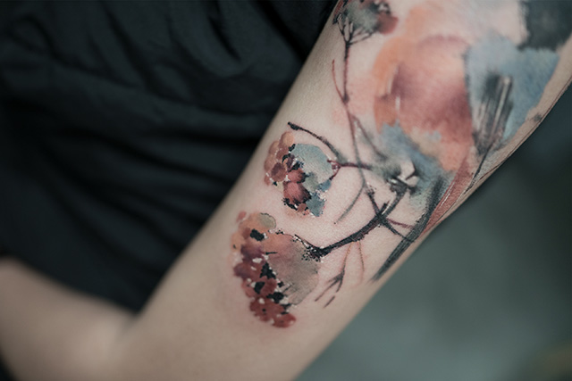 手臂上的花鸟