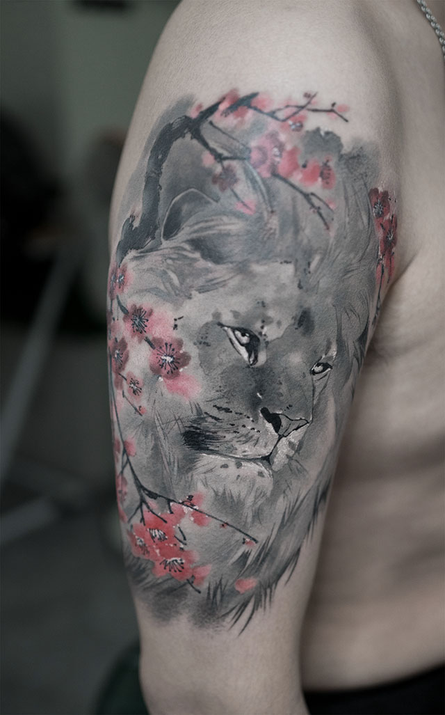 水彩 狮子 狐狸